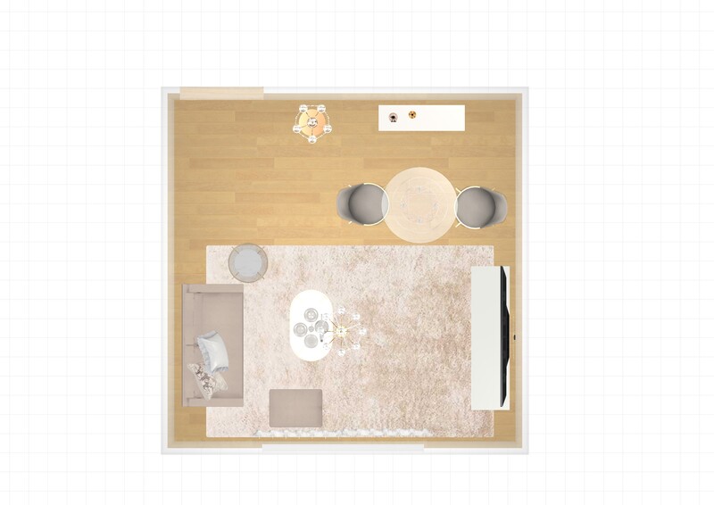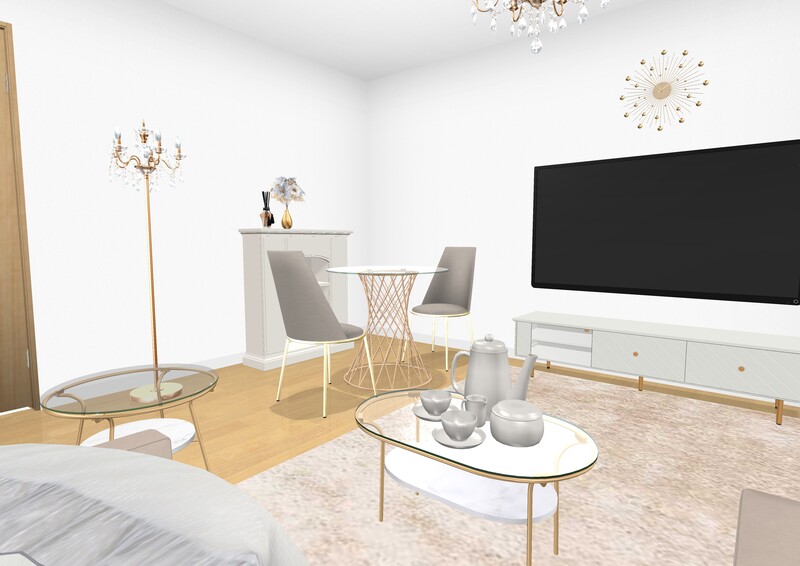 8帖のお部屋でもレイアウトを工夫することでソファとダイニングテーブルを設置可能に。