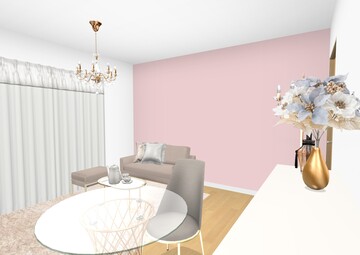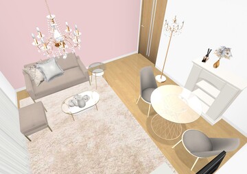 ピンクのアクセントクロスを貼り、敢えてかわいい要素を取り入れる事で上品になりすぎないバランスに。
