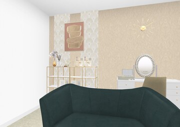 柄入りの壁紙をアクセントにシェルフをより華やかに演出。