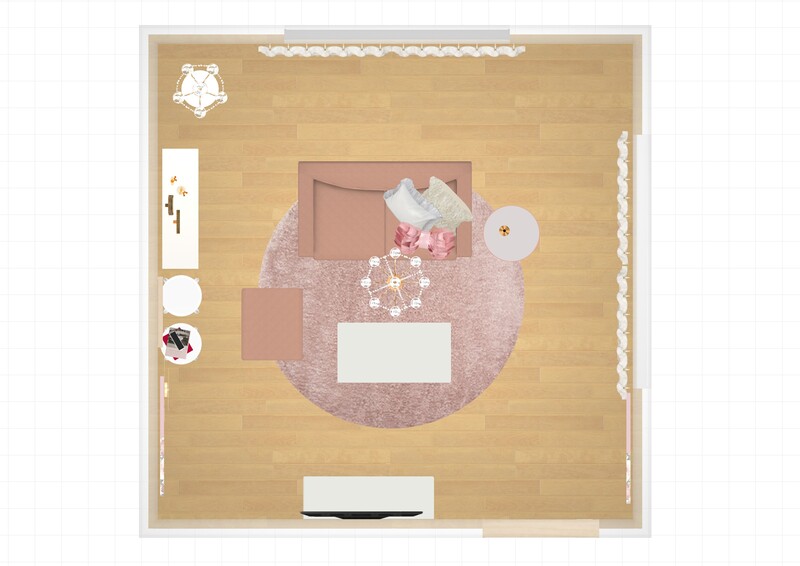 ラウンドのラグで直線×曲線のリズムの違いを演出、お部屋が柔らかな印象に。