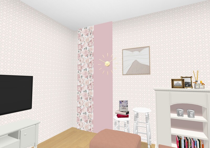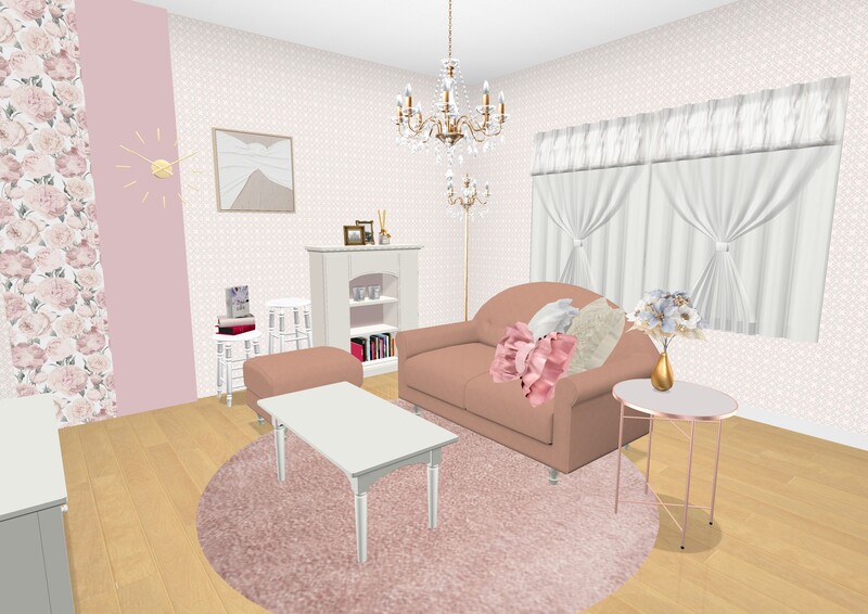 壁紙をピンクと花柄の組み合わせでフェミニンテイストをさらに楽しんで。