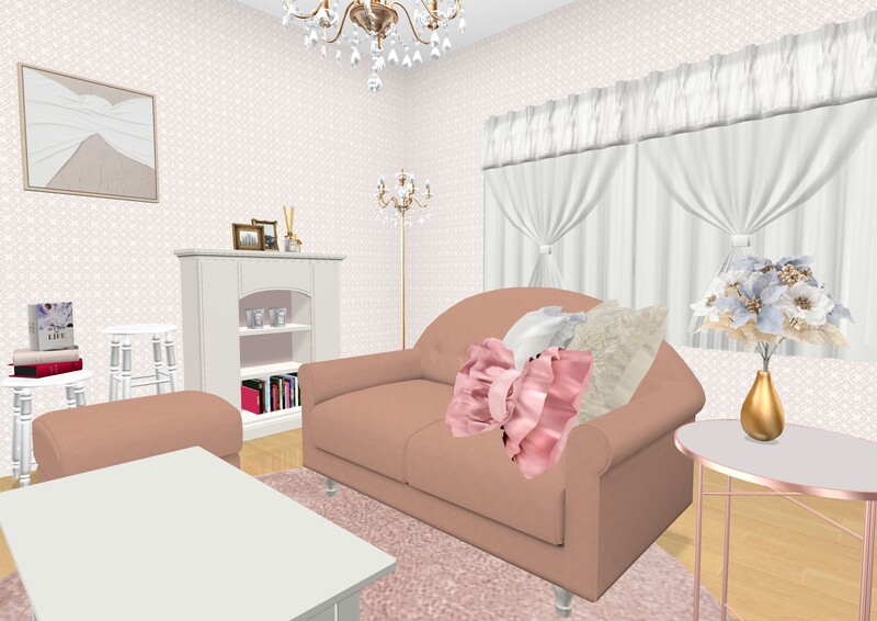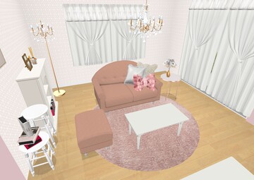 カーテンやクッションでもフリルやリボン等のフェミニン要素を取り入れました。