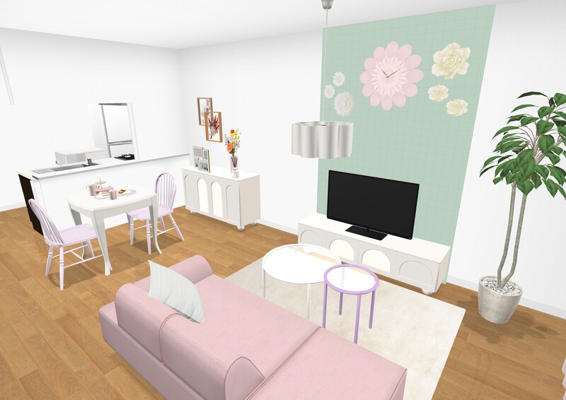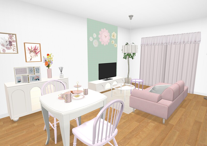 ホワイトをベースにアクセントでペールトーンのピンクやグリーンを取り入れメリハリとかわいさを両立
