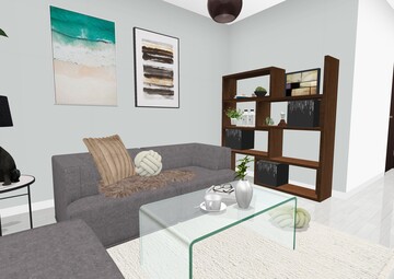 直線的なソファとシンプルなガラステーブルでモダンな雰囲気を演出