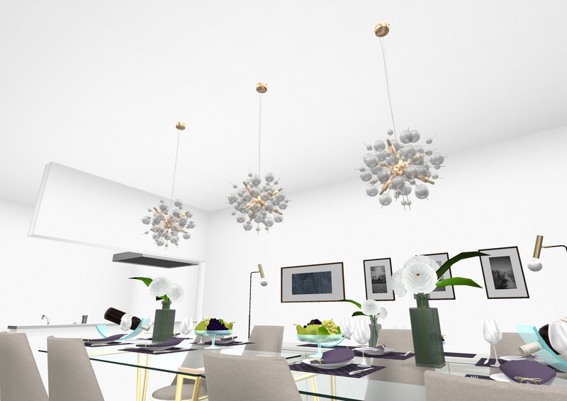 シャンデリアを3つ贅沢に使用することでラグジュアリーな雰囲気たっぷりに演出