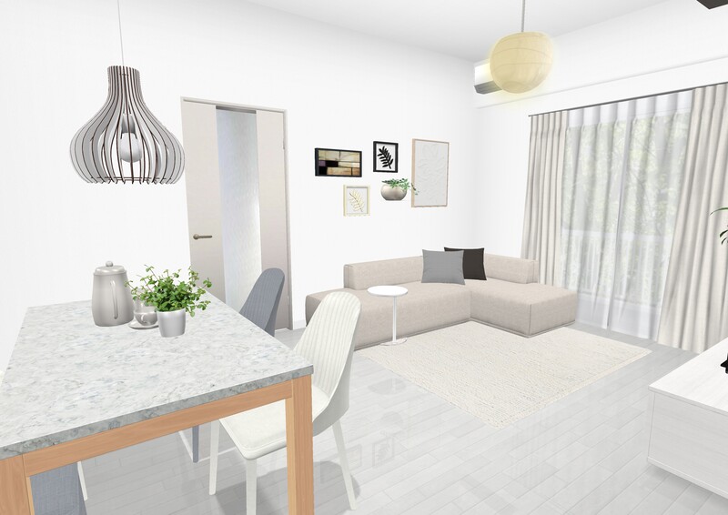 シンプル広々な無彩色リビング