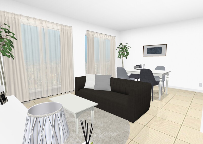 point 02お部屋の中央に配置するソファはロータイプを選ぶことで圧迫感なくすっきりと使えます。