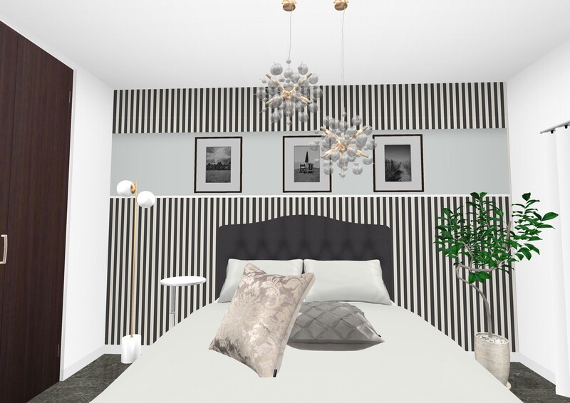 ベッド頭上にアートを飾り、入室時にベッドに視線が集まるアイポイントに。