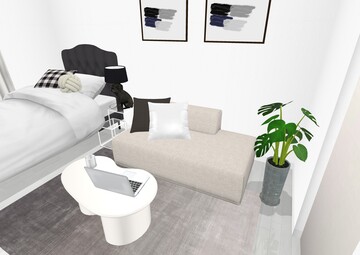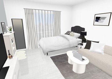 お部屋に余白を設けることでモノトーンでも堅苦しくないお部屋に