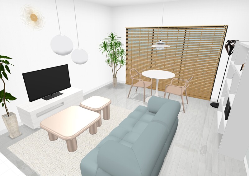 3Dシミュレーターを使って、間取りに合わせたプランをご提案します。家具に合うカーテンやラグ、アート・植物などの配置やコーディネートも可能です。 ※家具の配置のみのご相談は承ることができません、予めご了承ください。